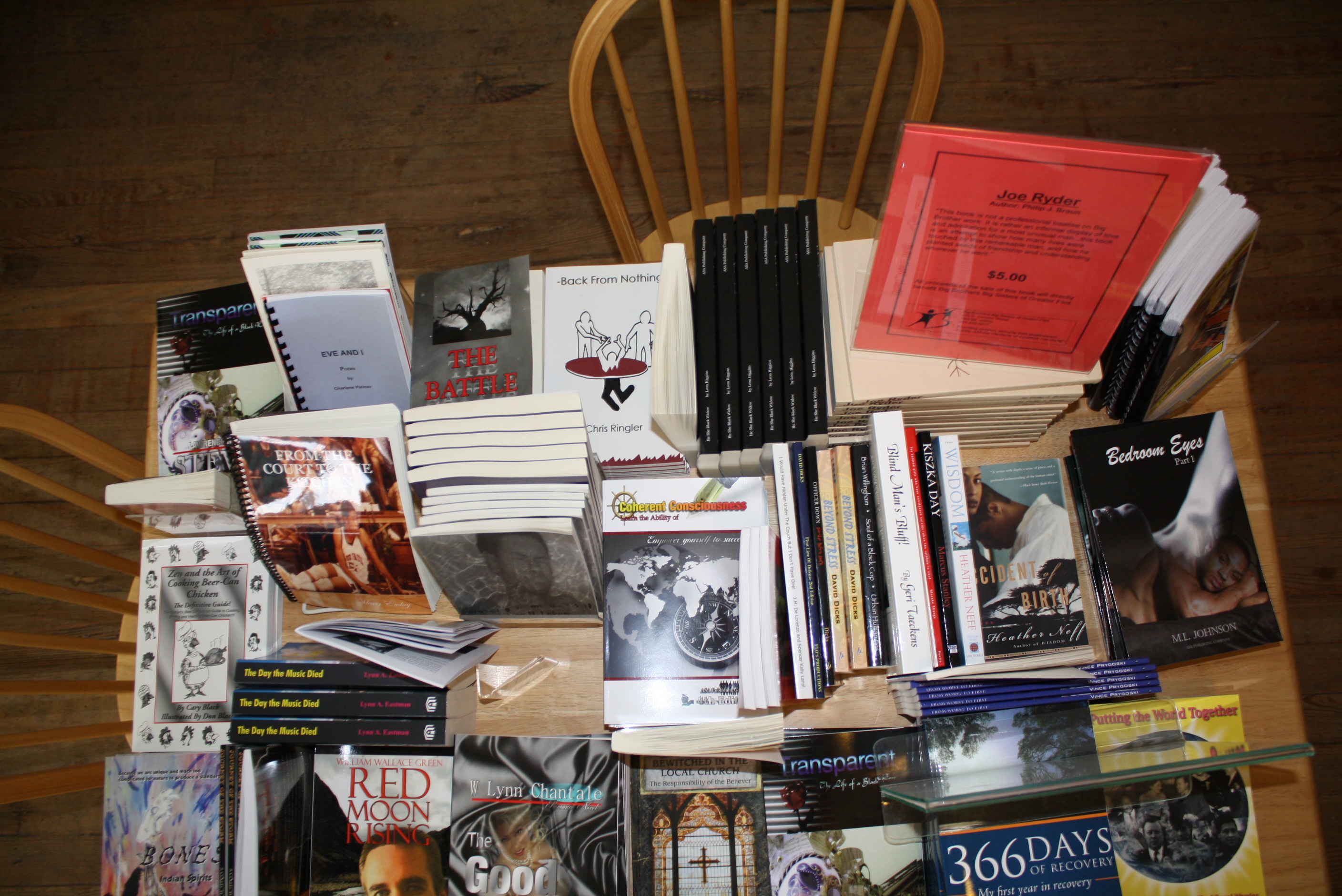 The stuff is my nerdery. The place is where I live, and where we have done some art shows and will do a last one in April. Pretty funky place in downtown Flint. Then you have my book for sale here in Flint, where I work, and my stuff as I was editing a story at work.