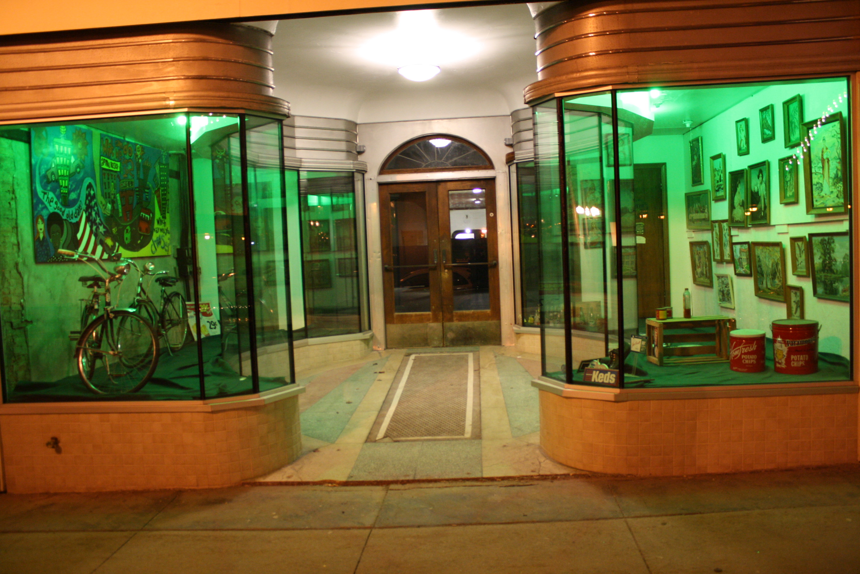 Is that the front of your building? I love the green lights and the displays in the windows. It makes it look really cool.